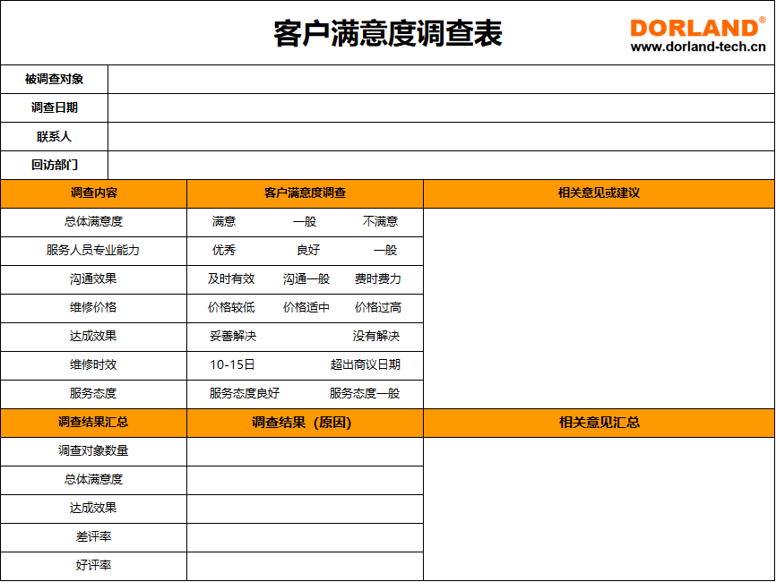 ما صمیمانه از شما استقبال می کنیم که با ما تماس بگیرید و در پرسشنامه های پس از فروش ما برای ارزیابی خدمات ما شرکت کنید و بر اساس ارزیابی ها و پیشنهادات شما بهبودهای مربوطه را انجام خواهیم داد. DORLAND cبهبود مستمر سطح خدمات، و رضایت شما همیشه خواهد بود تعقیب ما