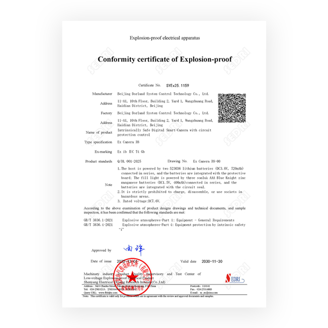 شرکت فناوری کنترل سیستم پکن دورلند اخیراً دوربین هوشمند دیجیتال ایمن با کنترل حفاظت مدار Ex Camera R8 را راه اندازی کرده است که از یک لنز 24-105 میلی متری و یک پایه RF جدید به طور مستقل توسط کانن ساخته شده است. طراحی نوری انعطاف پذیرتر است و به راحتی می توان به کیفیت تصویر بالا دست یافت. زوم تقریباً 4.4 برابر، پوشش فواصل کانونی رایج برای عکاسی روزانه، گرفتن عکس های نزدیک و دستیابی به جلوه های عکس شخصی سازی شده را آسان می کند. تثبیت کننده تصویر IS مجهز به حداکثر سرعت شاتر معادل حدود 5 سطح، پشتیبانی قوی از عکسبرداری را فراهم می کند.