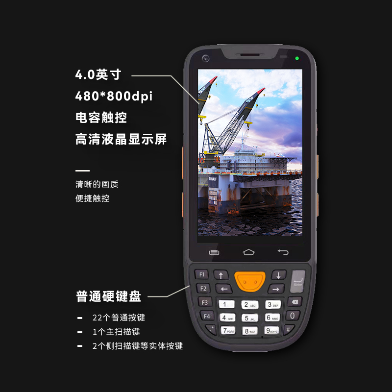 • نفیس و جمع و جور، آسان برای در دست گرفتن و حمل، صفحه نمایش لمسی خازنی درجه صنعتی 4.0 اینچی (480*800)، پشتیبانی از چند لمسی، بصری خوبی را ارائه می دهد. اثرات، و از خواندن در فضای باز در نور خورشید پشتیبانی می کند.