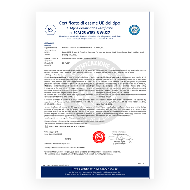 طراحی شده توسط Beijing Dorland System Control Technology Co., LTD.، تبلت PC/PAD EX EX Pad 07 5G (ATEX) از فناوری پیشرفته آلمان با مدار ذاتا ایمن، صفحه نمایش لمسی 8.0 اینچی و 5 مگاپیکسل (دوربین جلویی) + دوربین 13 مگاپیکسلی خودکار (دوربین فوکوس خودکار) (دوربین 13 مگاپیکسلی خودکار) استفاده کرد. دوربین 8 مگاپیکسلی (دوربین جلویی) + 16 مگاپیکسلی (دوربین عقب با فوکوس خودکار) عملکرد ضد آب و ضد گرد و غبار آن می تواند استانداردهای IP67 را برآورده کند.